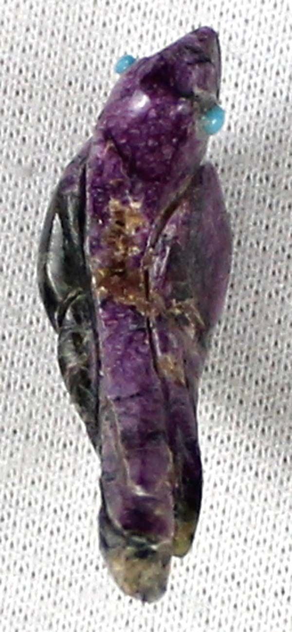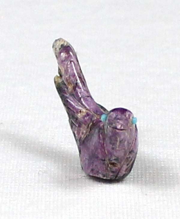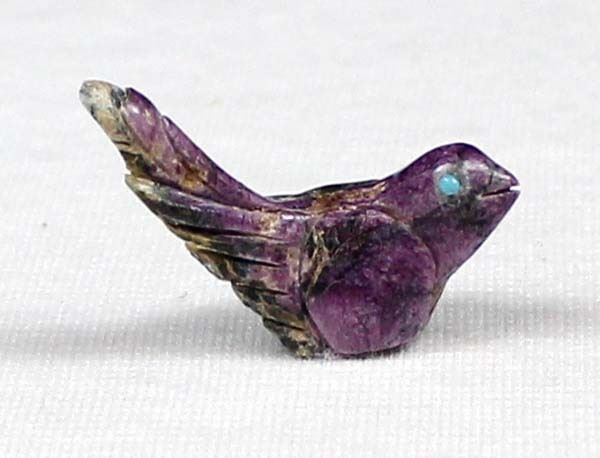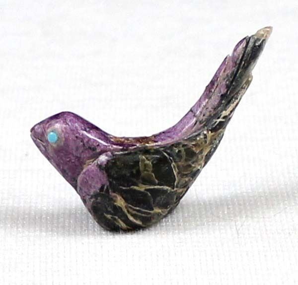 Native American Zuni Sugilite Bird Fetish by Ron Laahty, measures 1.25''L x .5''W and is signed on the bottom