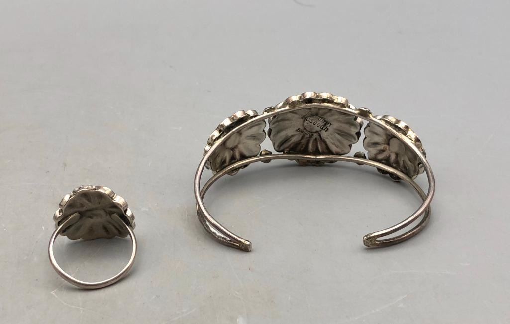For your consideration we have for sale in this lot a Zuni sunface inlay three piece set. The set has a great sunface designs with turquoise, coral, mother of pearl and black onyx inlay. It comes with bracelet, necklace, and ring. Stamped as sterling. Maker: Hallmarked Burdian Soseeah (Zuni). Active since 1960s. Approx. Age: 1970s. Size: Necklace fits a 13 inch neck. Bracelet measures 5-5/8 inches long, opening is an additional 1-1/8 inch, fitting a 6-3/4 inch wrist. Width is 1-1/8. Ring is a size 8.5. Weighs 45.7 grams. Condition: Good for its age, normal wear expected. Please look closely at the pictures - they are an important part of our description. Shipping: There will be a $5 handling / packaging fee for shipping this lot. The actual cost of postage will be added on top of that. BUY IT NOW: If you would like to buy this item now without waiting for the auction to end (this option is only available up to 48 hours before the auction starts to close), the “Buy it Now” price is the high estimate of this lot. If you would like to end the auction early and pay the high estimate (plus applicable fees), please contact us by phone or email and reference this lot number.