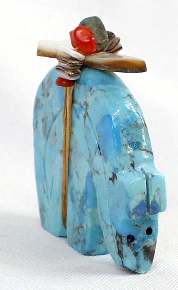 Zuni Turquoise Bear Fetish by Stewart Quandelacy, measures 1.75" x 2" x .25"