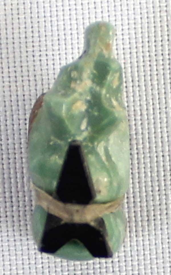 Native American Zuni Turquoise Bear Fetish by Terry Leonard, measures 1'' x .75'', jet arrowhead spirit bundle