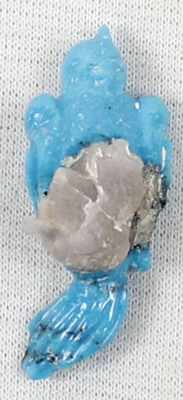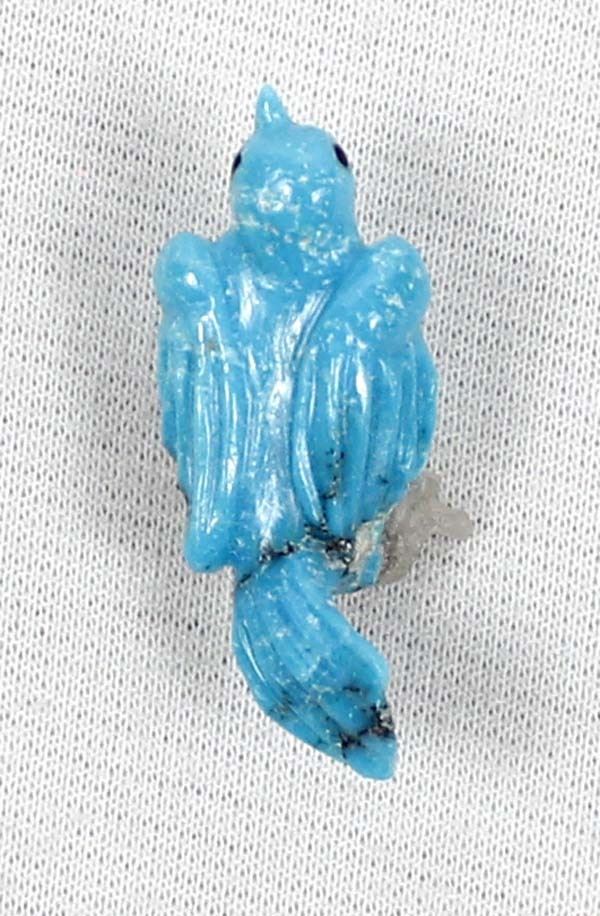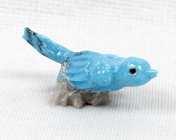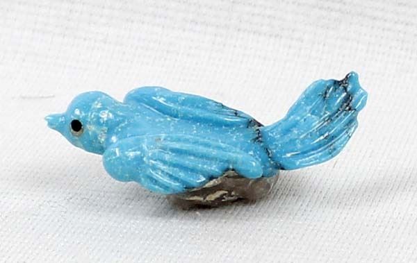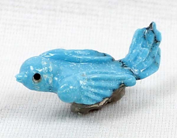 Native American Zuni Turquoise Bird Fetish by Ricky Laahty, measures 1.25'' x .5'', and is signed on the bottom