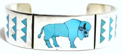 Zuni Turquoise Buffalo Sterling Silver Cuff Bracelet - Rudell & Nancy Laconsello