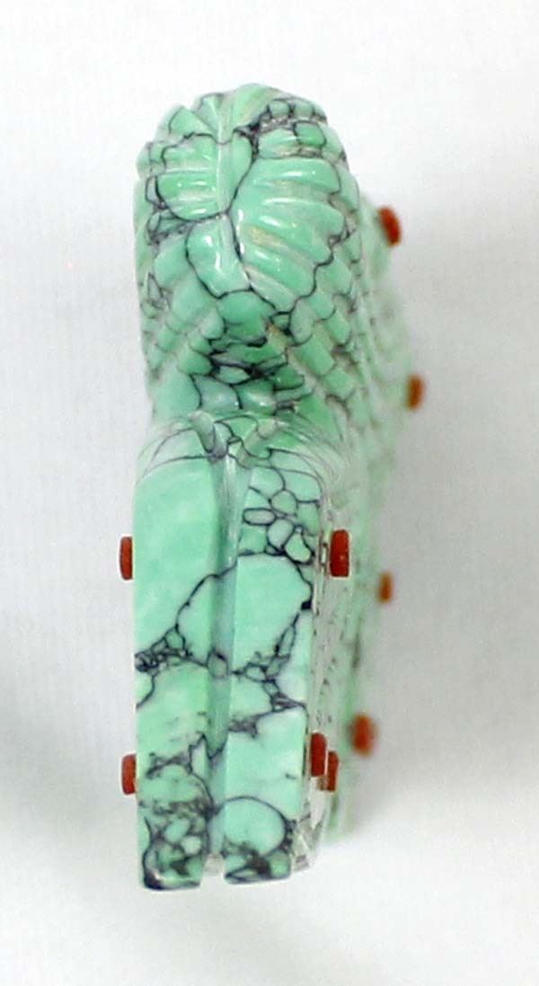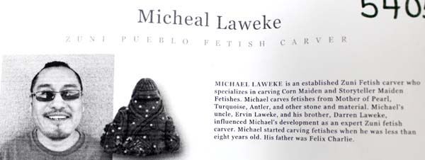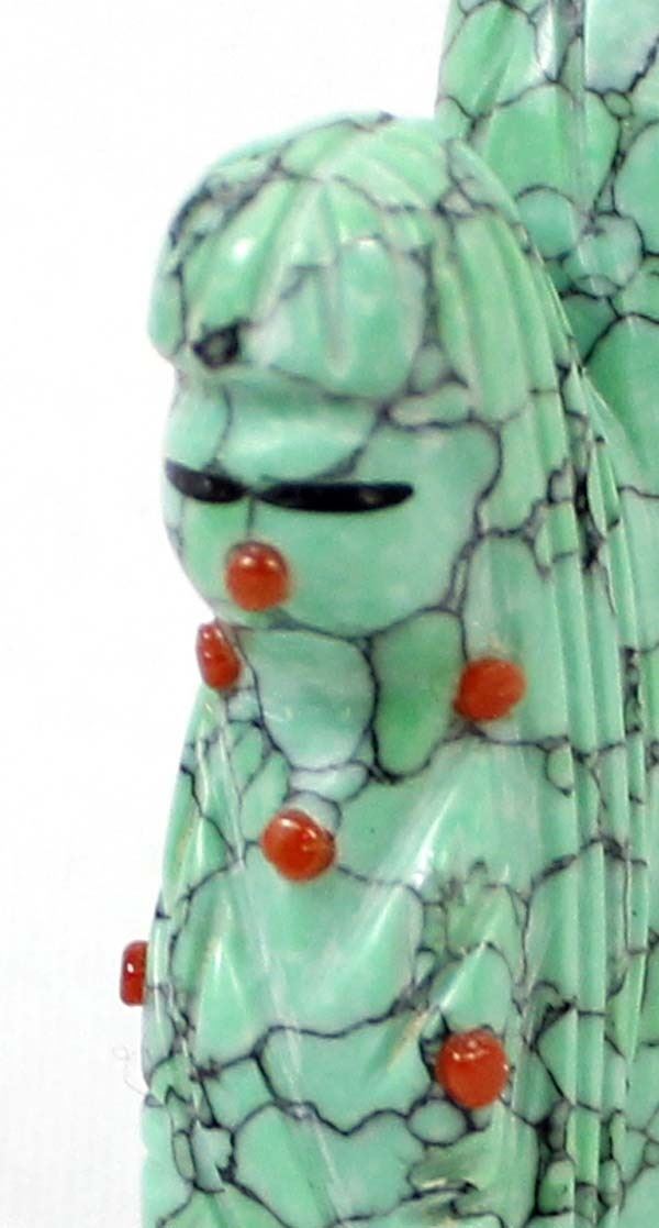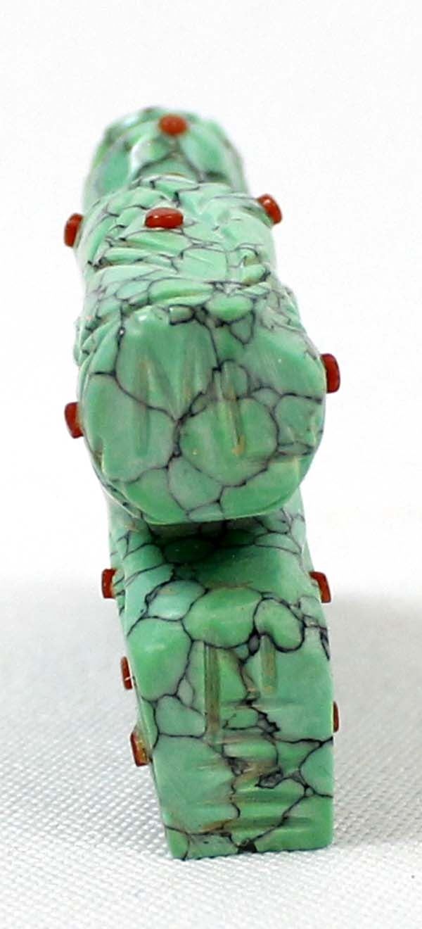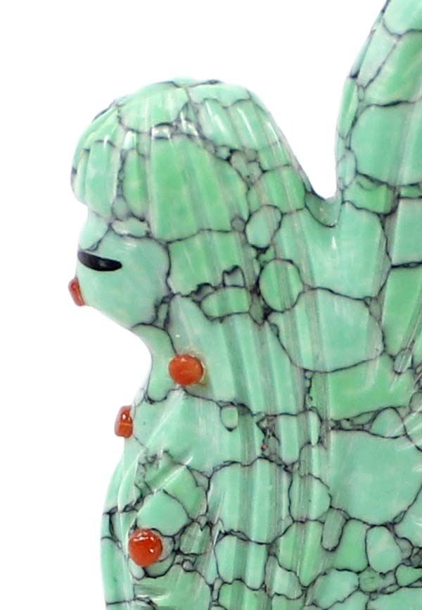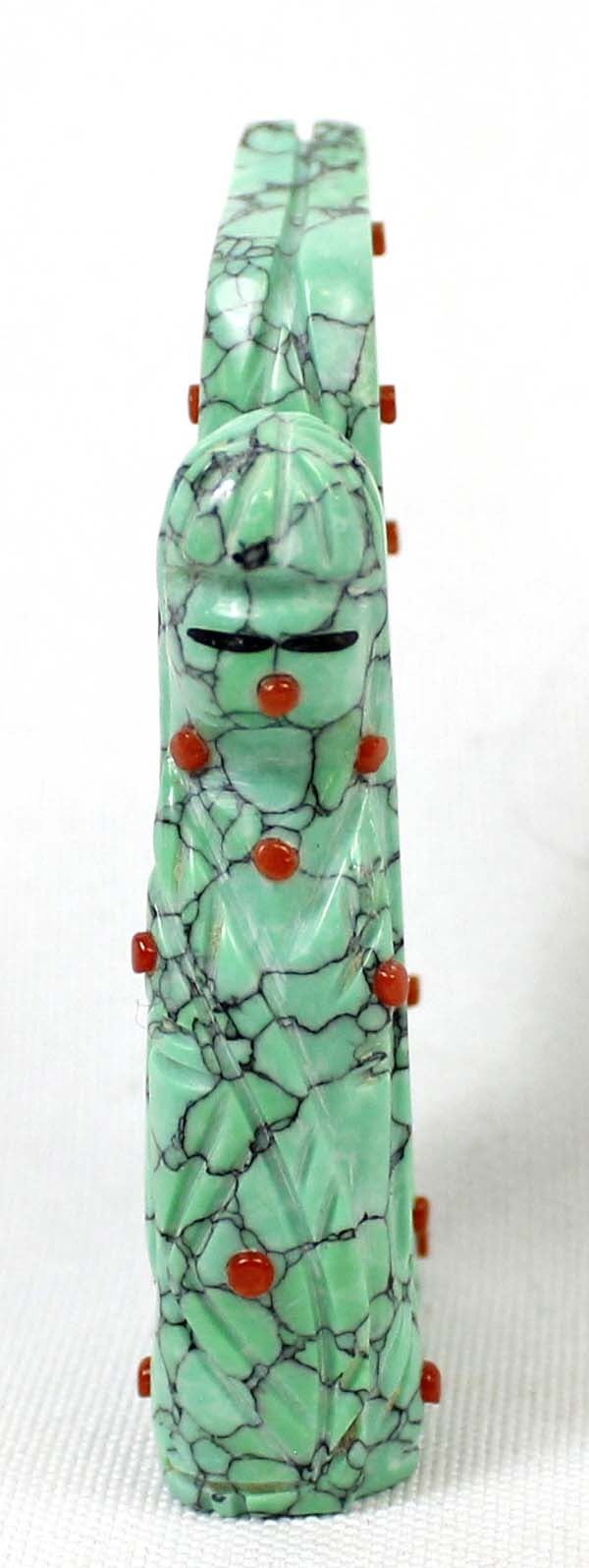 Native American Zuni Turquoise Butterfly Maiden Fetish by Michael Laweke, measures 1.5'' x 2'' x .5'', has artist's initials on the bottom, embellished with coral