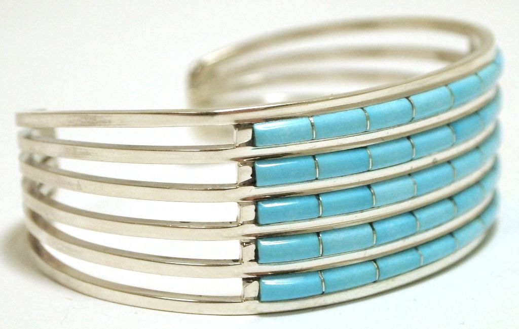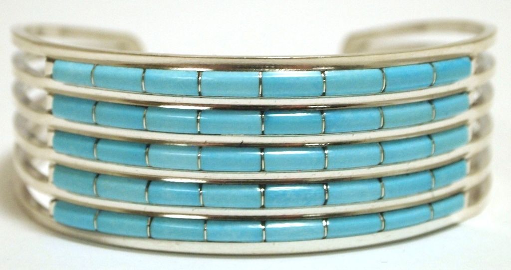 Zuni Turquoise Channel Inlay Sterling Silver Cuff Bracelet - Anselm Wallace