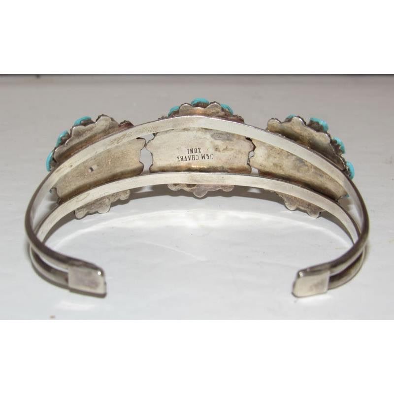 Zuni Turquoise Cluster Cuff Bracelet Sterling Silver David & Mary Chavez