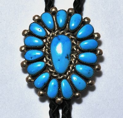 Zuni Turquoise Cluster Sterling Silver Bolo Tie - L.W.