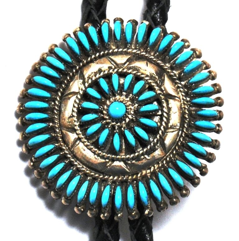 Zuni Turquoise Cluster Sterling Silver Bolo Tie