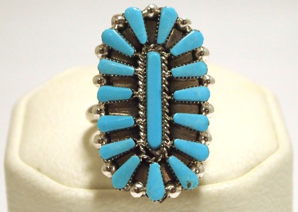 Zuni Turquoise Cluster Sterling Silver Women's Ring - Valencia Halusewa