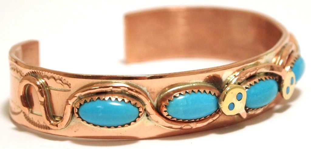 Zuni Turquoise Copper Snakes Cuff Bracelet - Effie Calavaza