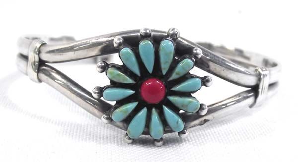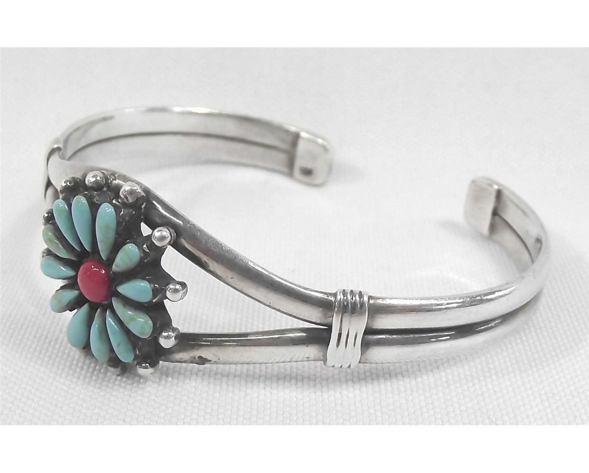 Native American Zuni Turquoise Coral Bracelet. Measures approx. 6 3/4'' x 7/8''W.