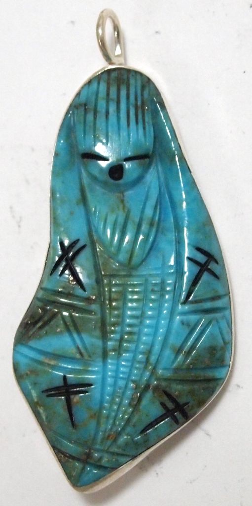 Zuni Turquoise Corn Maiden Fetish Sterling Silver Pendant & Pin - Chad Quandelacy & Valerie Comosona
