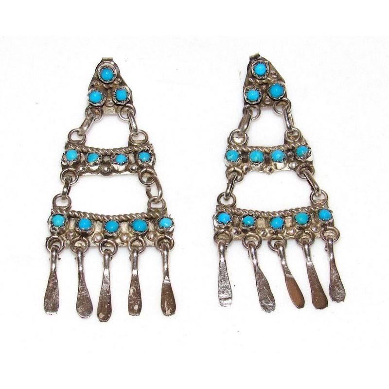 Zuni Turquoise Dangle Earrings Sterling Silver M. Dishta Native American
