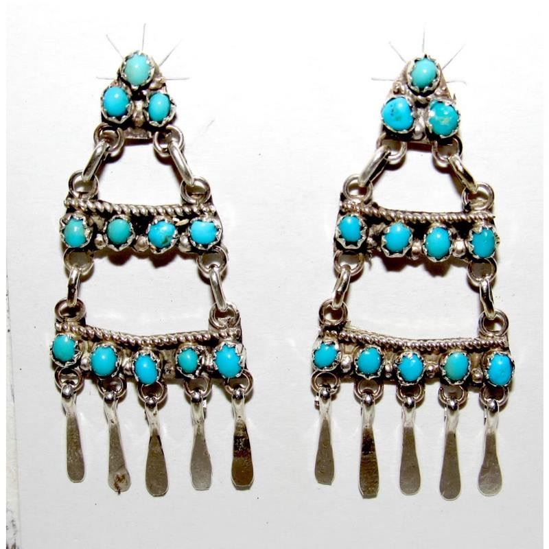 Zuni Turquoise Dangle Earrings Sterling Silver Milburn Dishta Native American