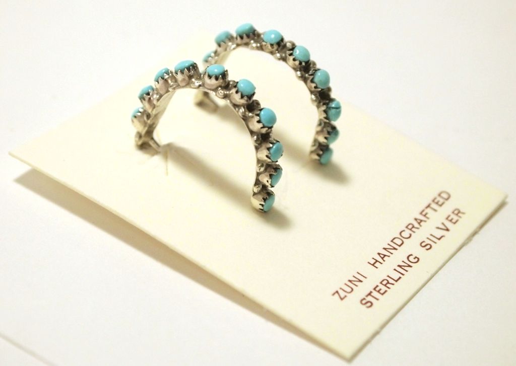 Zuni Turquoise Dot Sterling Silver Half-Ring Post Earrings - Jennie Gasper