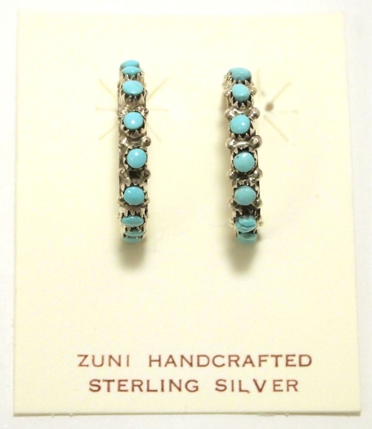 Zuni Turquoise Dot Sterling Silver Half-Ring Post Earrings - Jennie Gasper