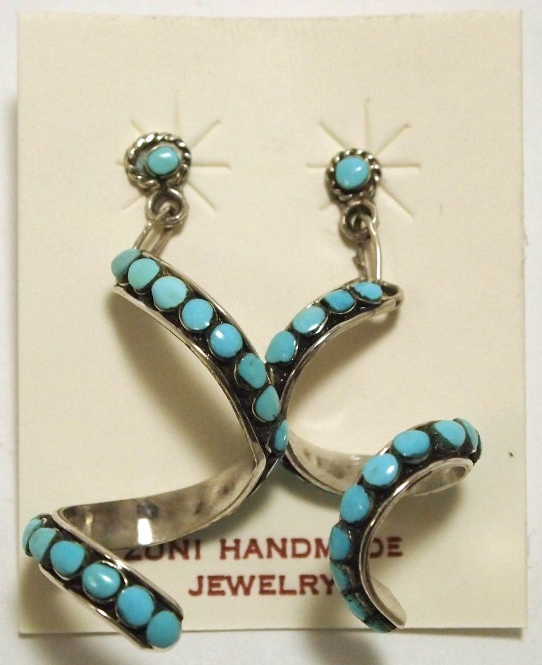 Zuni Turquoise Dots Sterling Silver Spiraling Post Earrings - Everett Abeita
