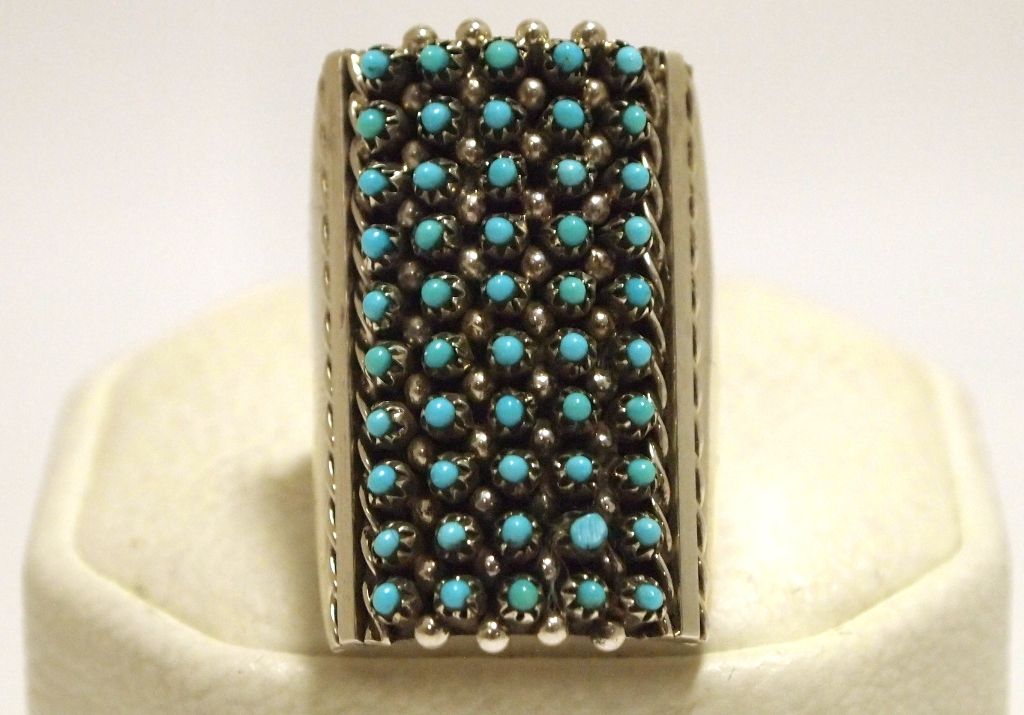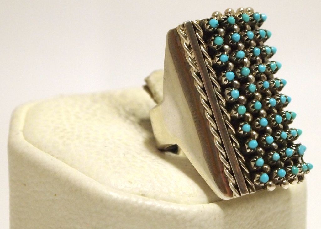 Zuni Turquoise Dots Sterling Silver Women's Ring - Sam Haloo
