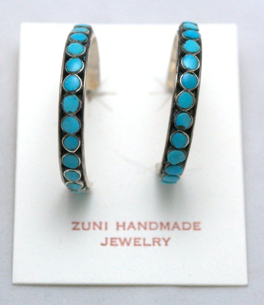 Zuni Turquoise Dotted Onyx 3/4 Ring Earrings