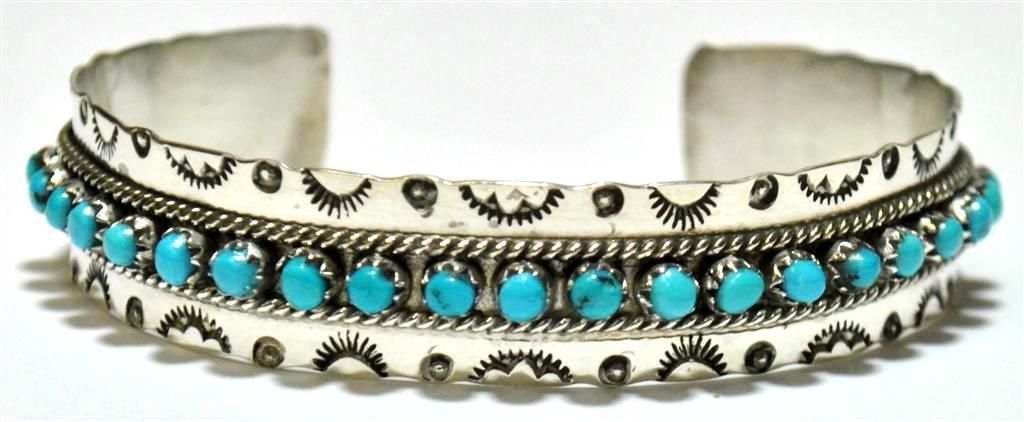 Zuni Turquoise Dotted Sterling Silver Cuff Bracelet - P. Ukestine