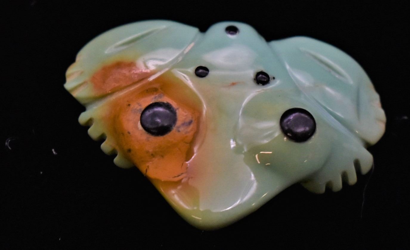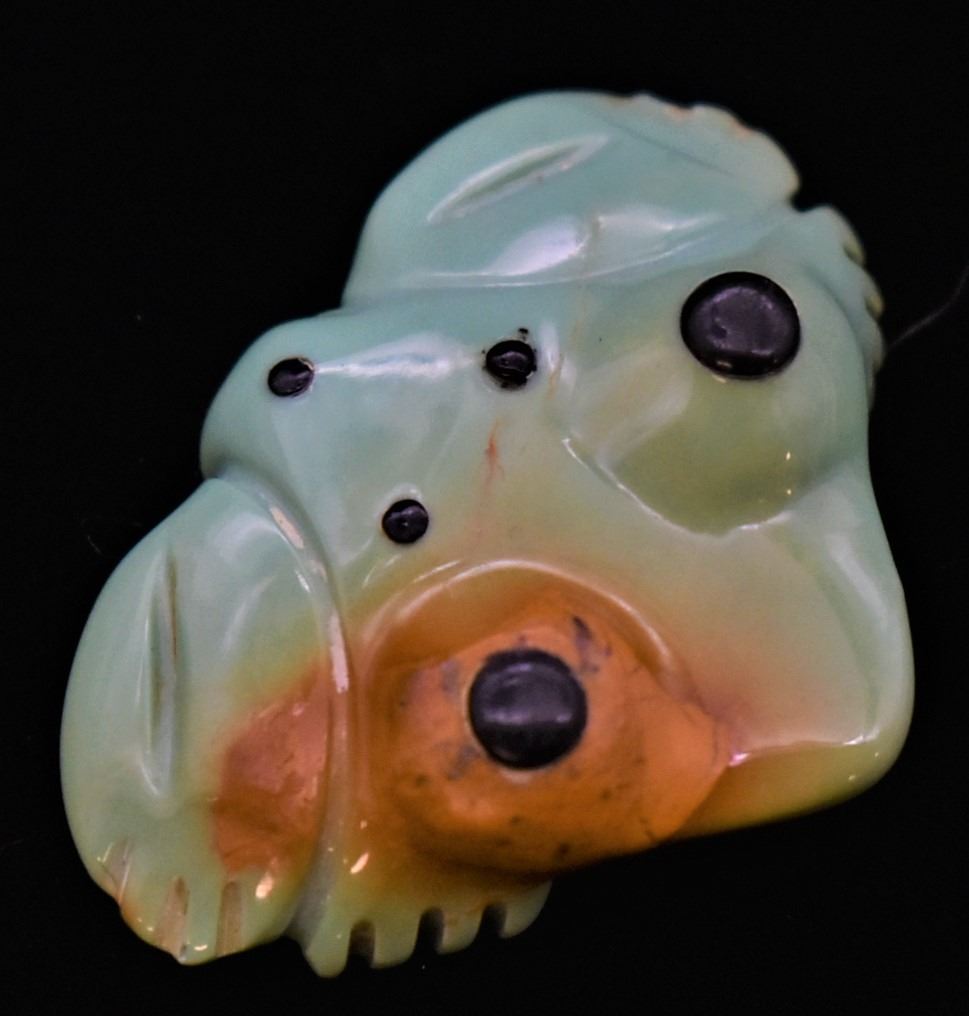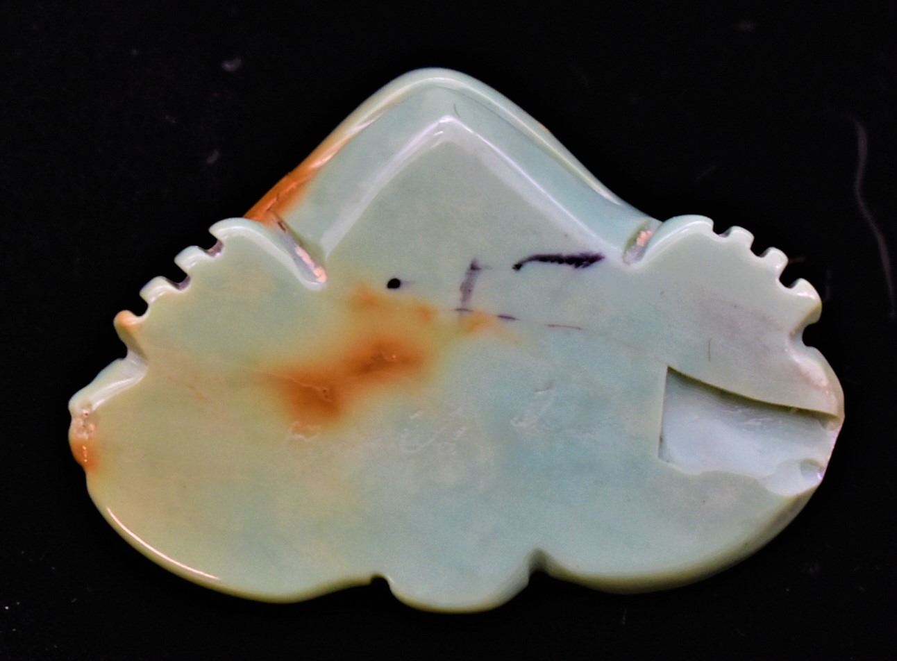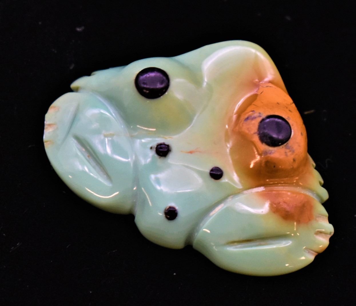Native American Zuni Royston Turquoise Frog Fetish by Georgette Quam, measures 1 1/8''L x .75''W x .25''H, signed on the bottom