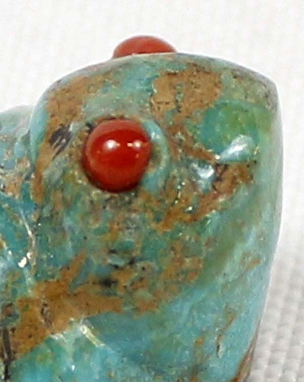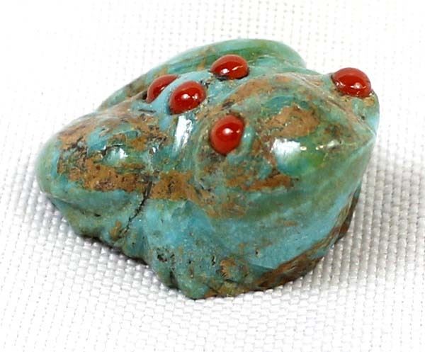 Native American Zuni Turquoise Frog Fetish by Veronica Poblano, measures .5'' x .75'' and is signed on the bottom, coral eyes and spots