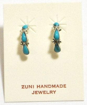 Zuni Turquoise Half-Ring Sterling Silver Post Earrings