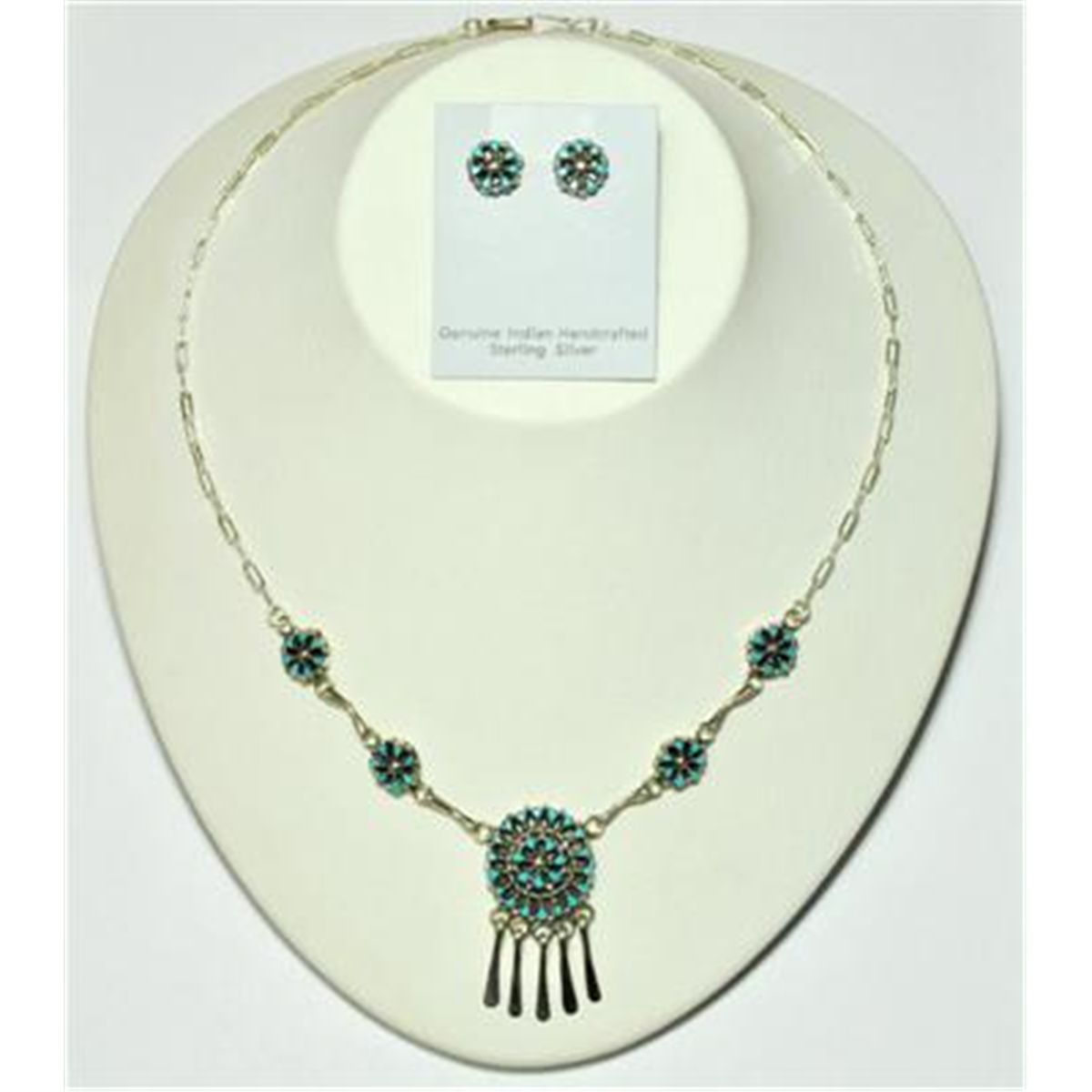 Measures 19" around. Pendant measures 1-5/8" tall by 1-7/8" wide. Weight: 13.2g.