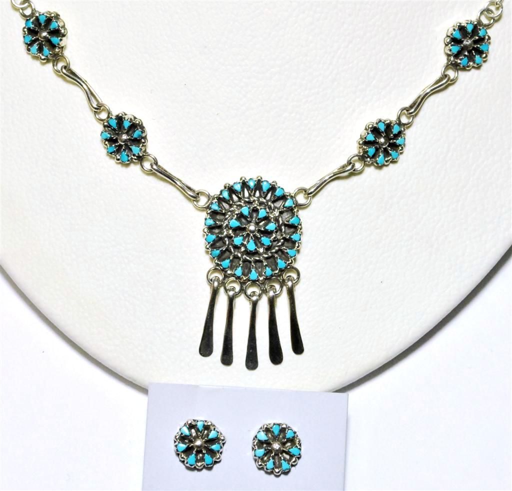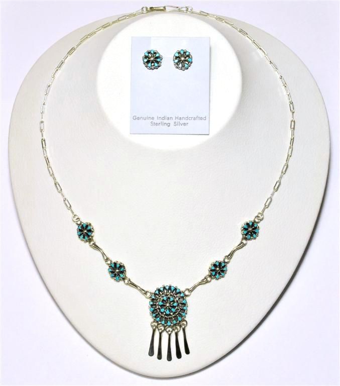 Zuni Turquoise Hanger Pendant Necklace & Earrings Set