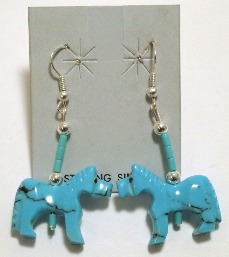 Zuni Turquoise Horse Fetish French Hook Earrings - Todd Etsate
