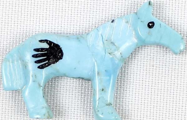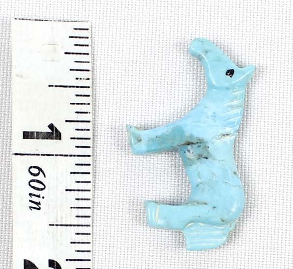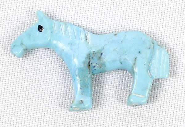 Native American Zuni Turquoise Horse Fetish by Carol Martinez, measures 1.5''L x 1''H x .25''W, artist's intials on the bottom of horse's hooves, jet eyes