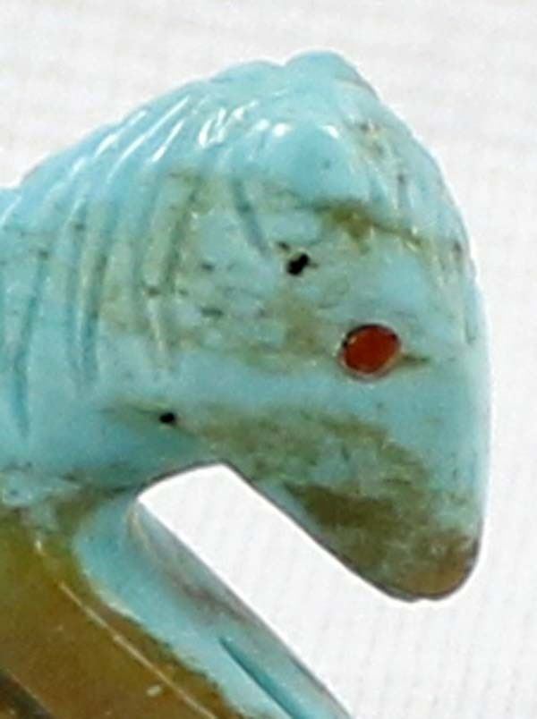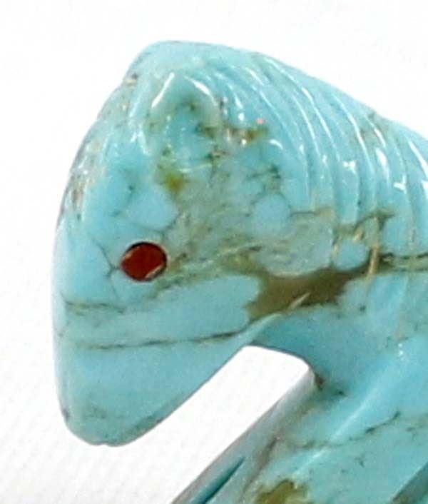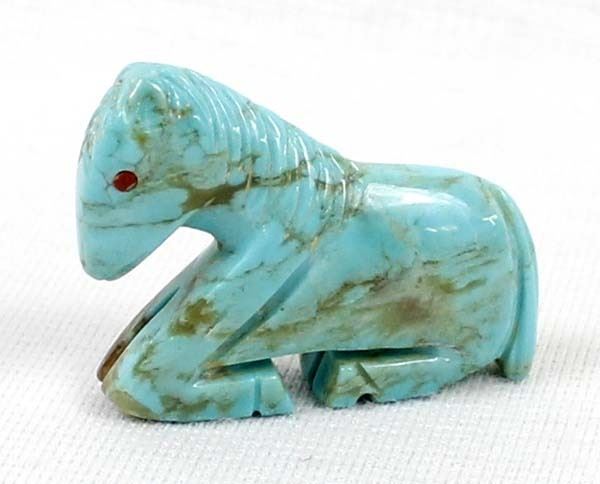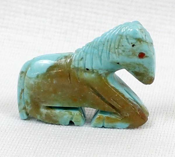Native American Zuni Turquoise Horse Fetish by Vivella Cheama, measures 1.25'' x .75'' and has artist's intials on the bottom, coral eyes