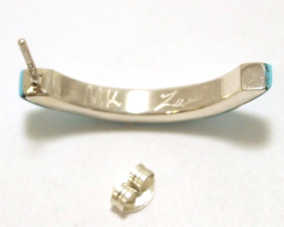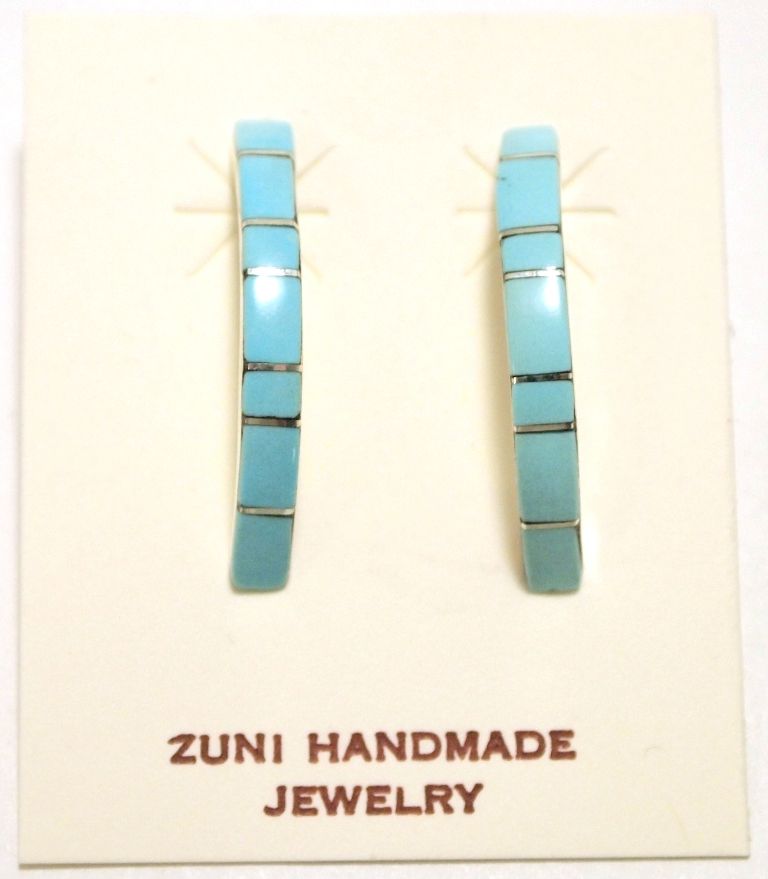 Zuni Turquoise Inlay Sterling Silver 1/4-Ring Post Earrings - Monica Kanesta