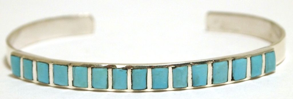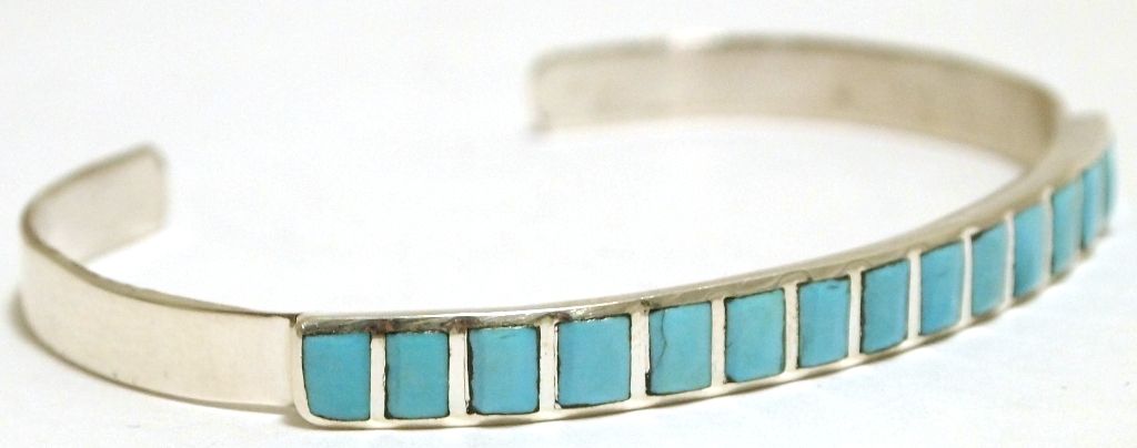 Zuni Turquoise Inlay Sterling Silver Cuff Bracelet - Glennetta Luna