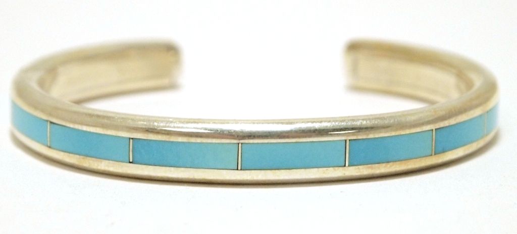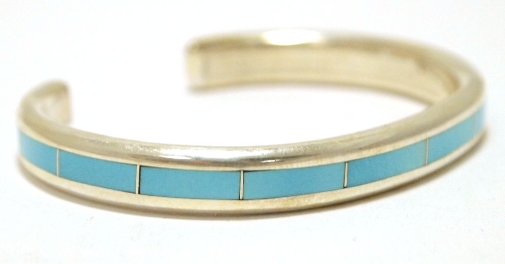 Zuni Turquoise Inlay Sterling Silver Cuff Bracelet - Larry Loretto