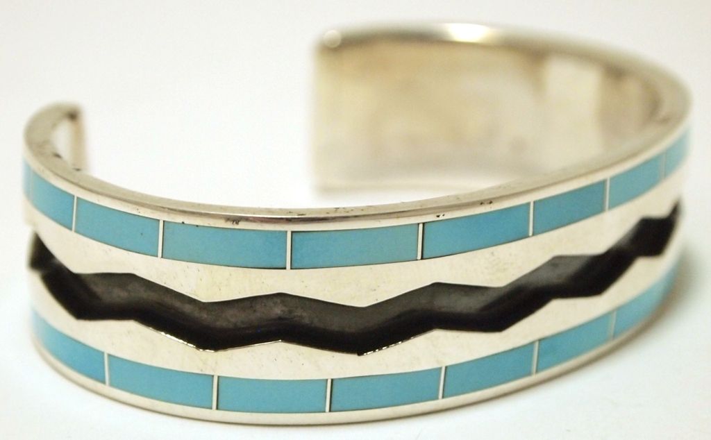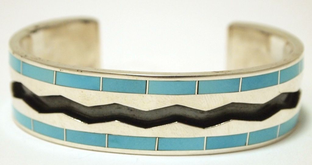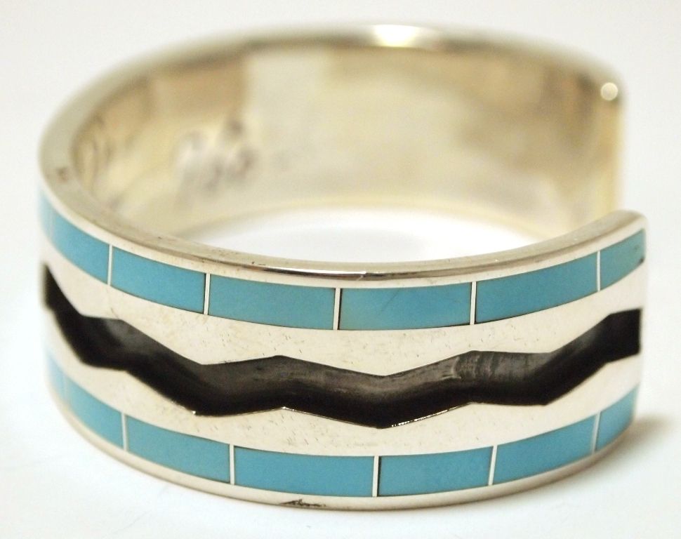 Zuni Turquoise Inlay Sterling Silver Cuff Bracelet - Larry Loretto