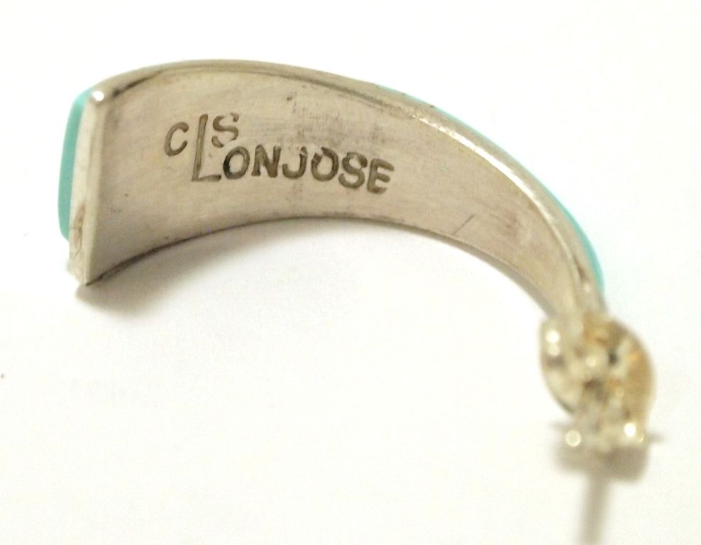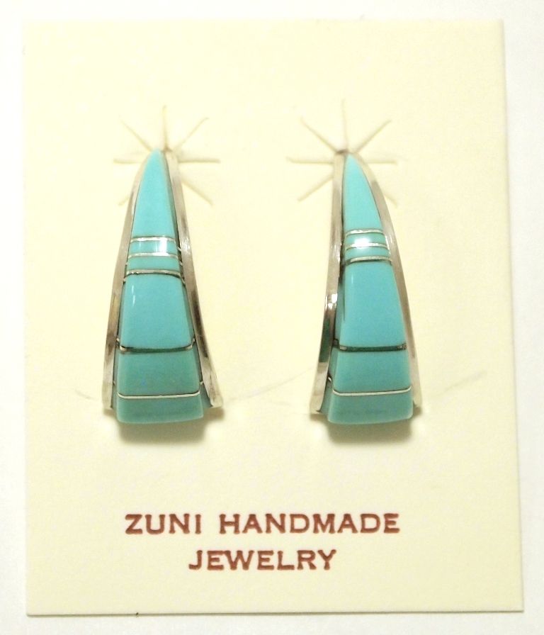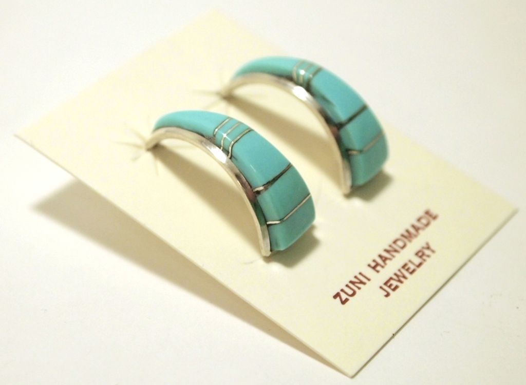 Zuni Turquoise Inlay Sterling Silver Curved Post Earrings - C.S. Lonjose
