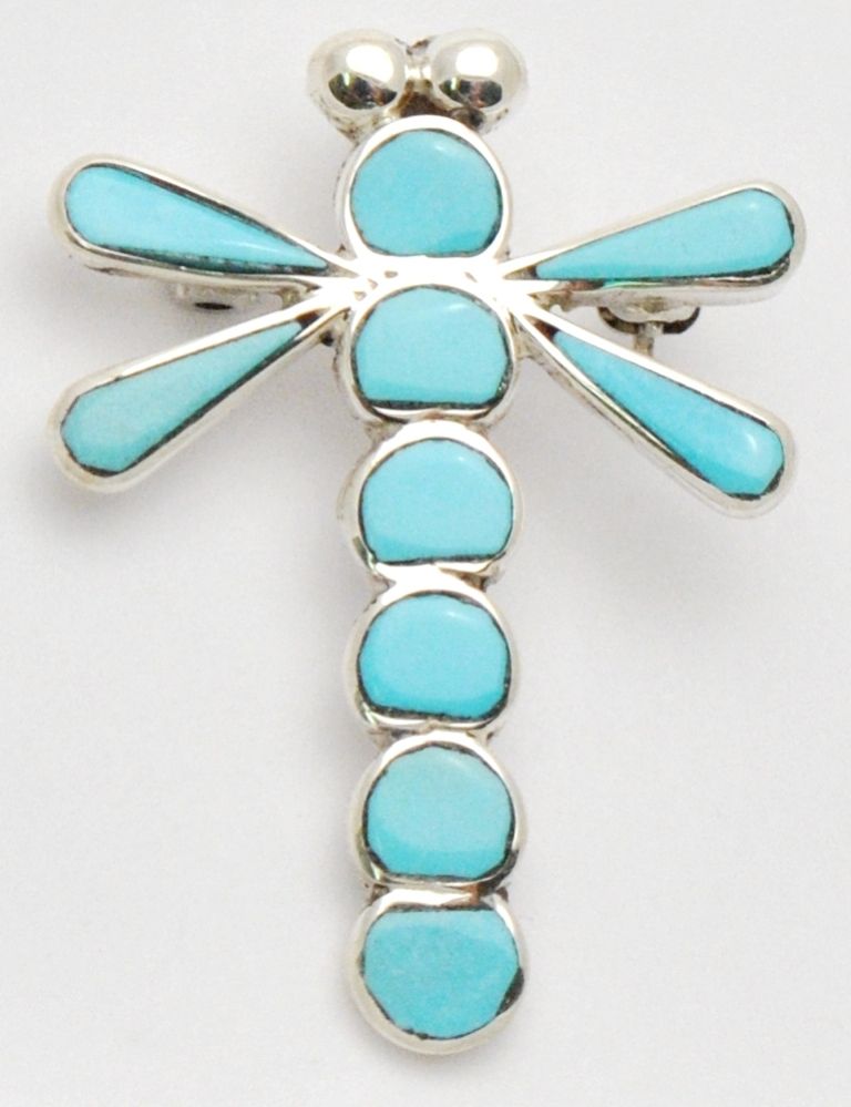 Zuni Turquoise Inlay Sterling Silver Dragonfly Pendant & Pin - Emma Edaakie