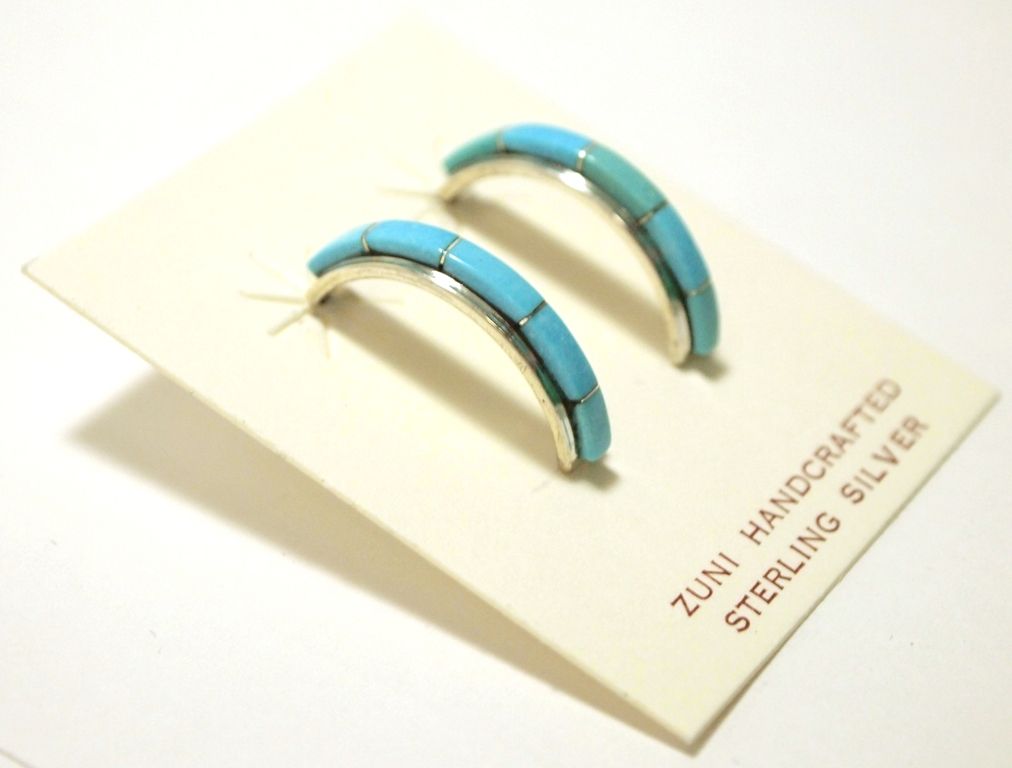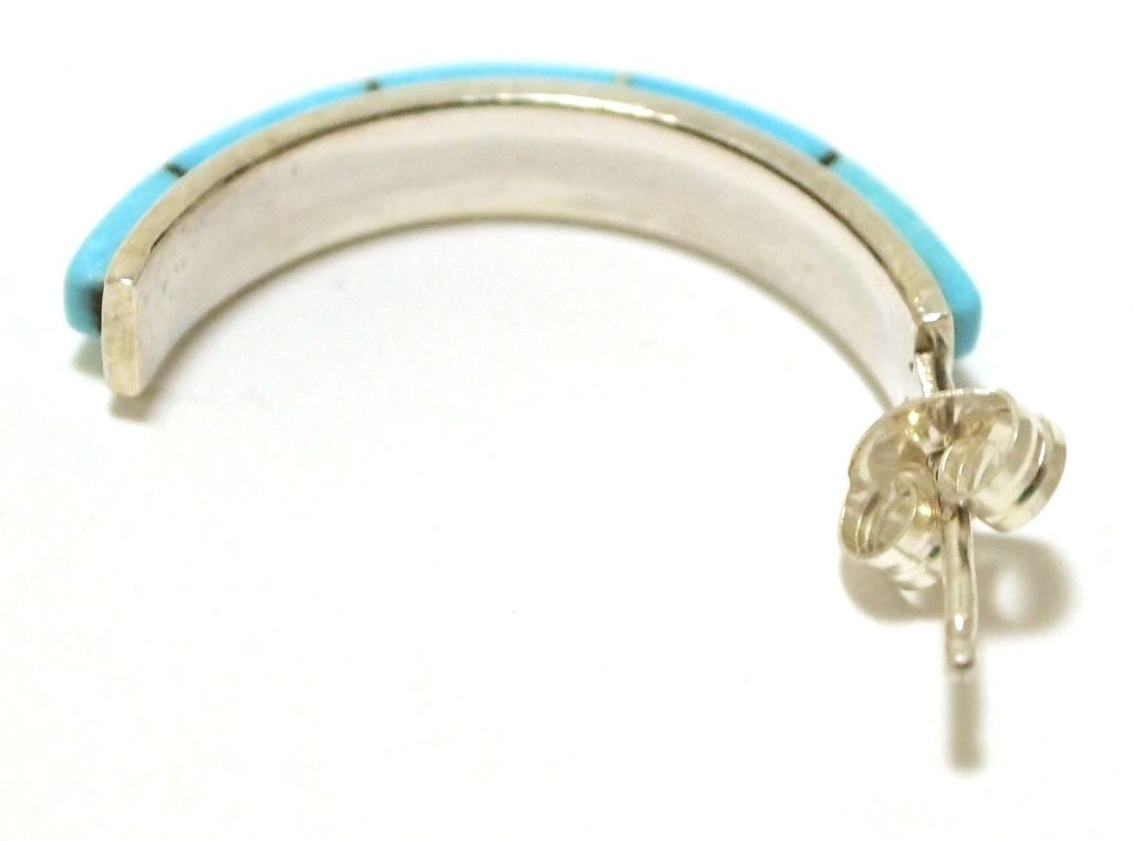 Zuni Turquoise Inlay Sterling Silver Half-Ring Post Earrings - Antonio Duran