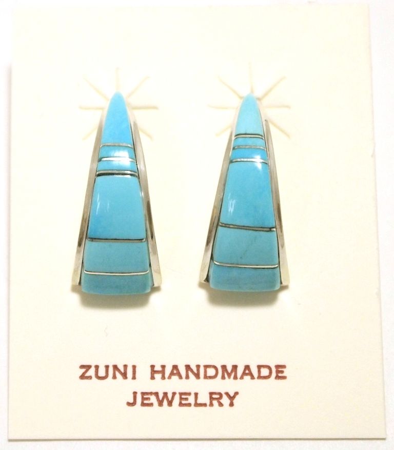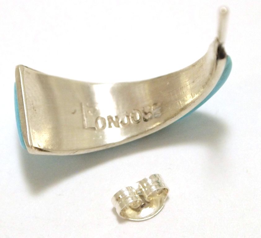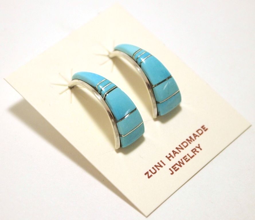 Zuni Turquoise Inlay Sterling Silver Half-Ring Post Earrings - CS Lonjose