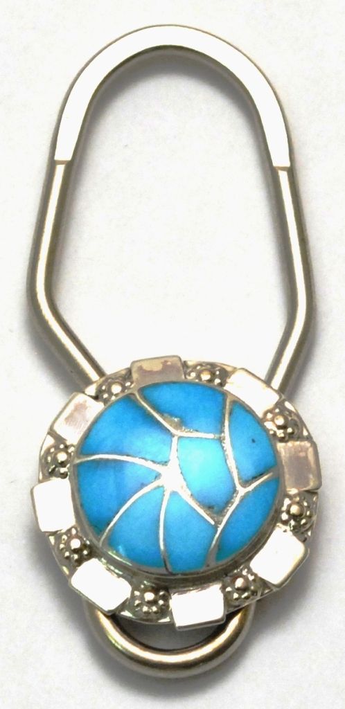 Zuni Turquoise Inlay Sterling Silver Keyring - Carmichael Haloo