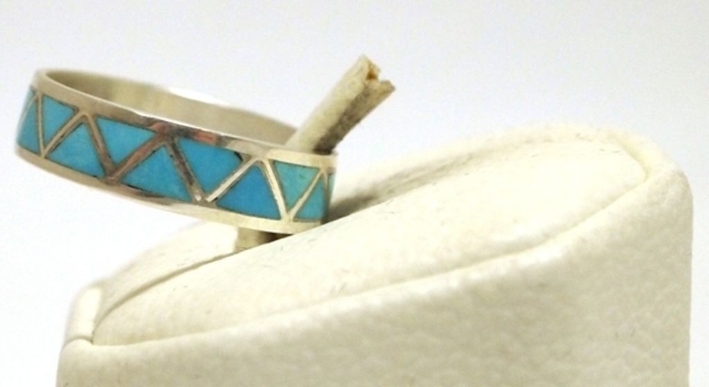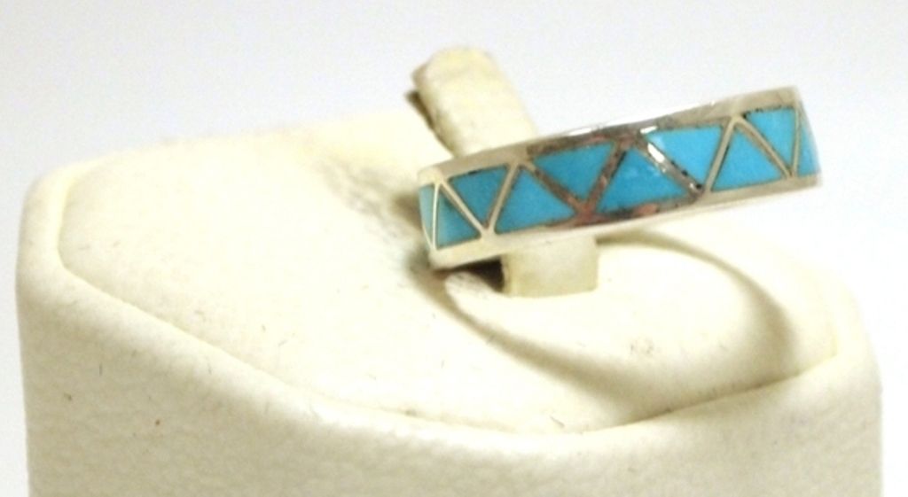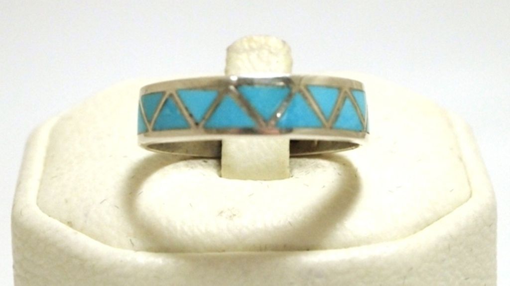 Zuni Turquoise Inlay Sterling Silver Men's Ring - Jim Haloo