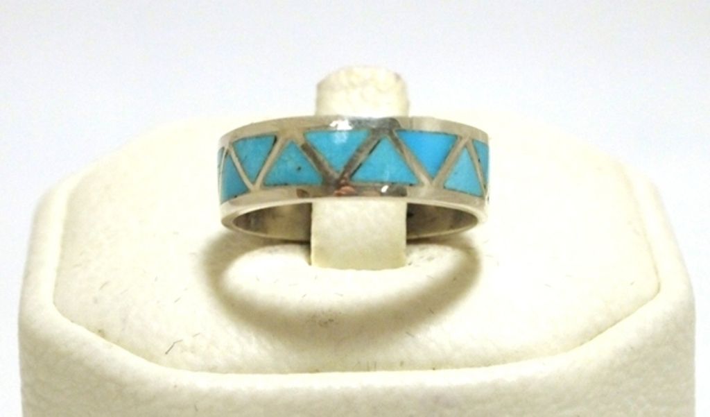 Zuni Turquoise Inlay Sterling Silver Men's Ring - Jim Haloo