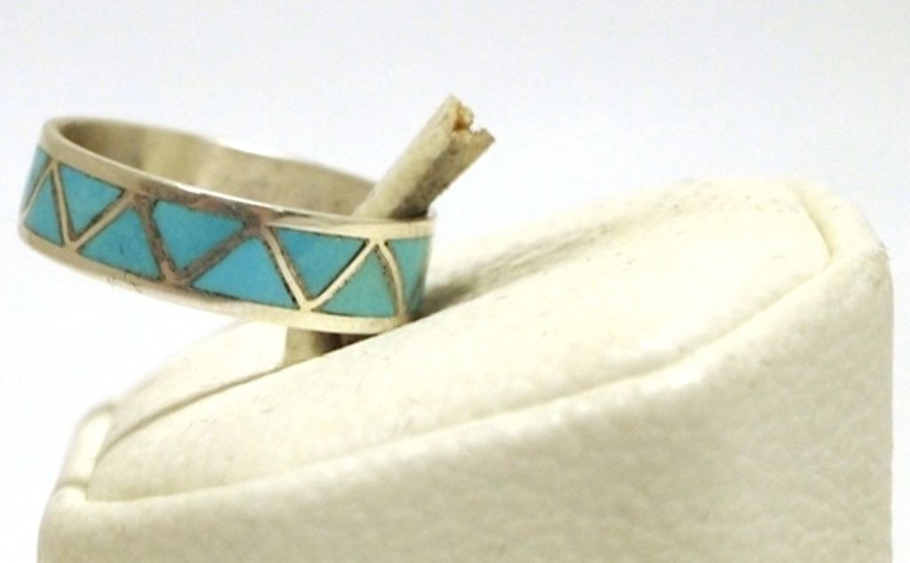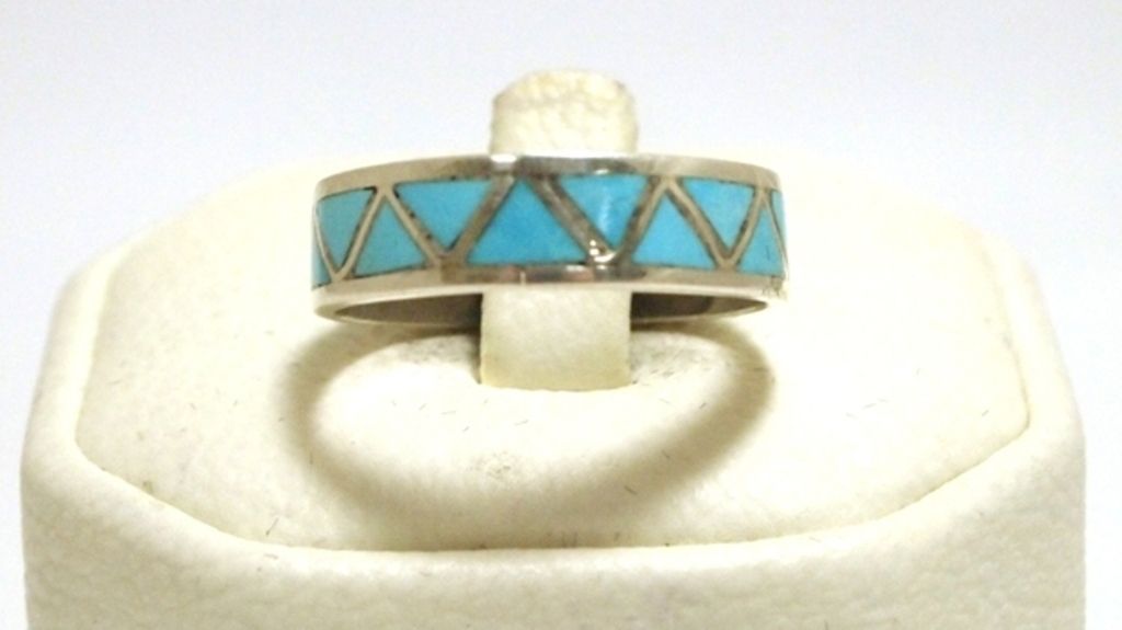 Zuni Turquoise Inlay Sterling Silver Men's Ring - Jim Haloo