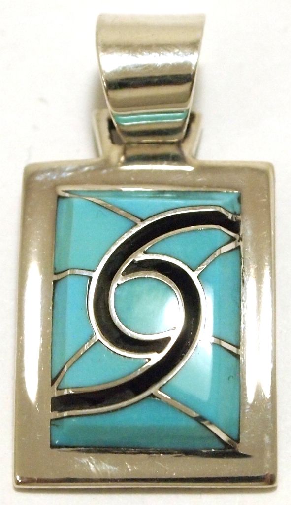 Zuni Turquoise Inlay Sterling Silver Pendant - Amy Quandelacy