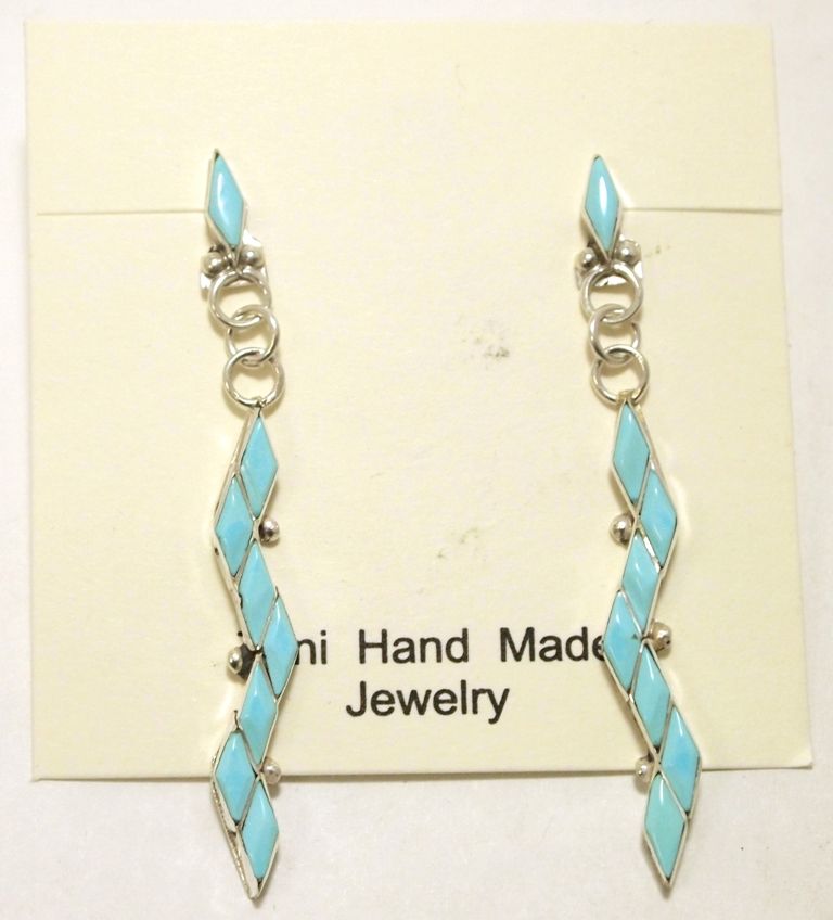 Zuni Turquoise Inlay Sterling Silver Post Earrings - Claudia Wallace