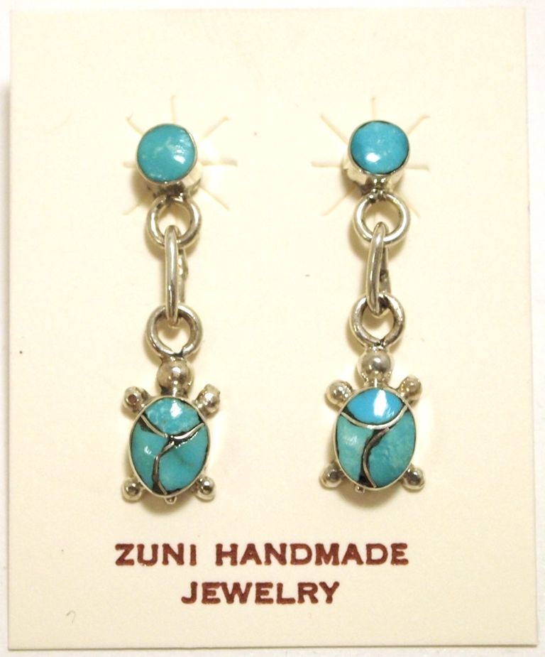 Zuni Turquoise Inlay Sterling Silver Turtle Post Earrings - Vernon Waikaniwa