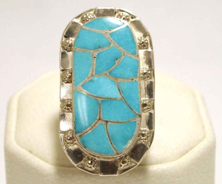 Zuni Turquoise Inlay Sterling Silver Women's Ring - Carmichael Haloo