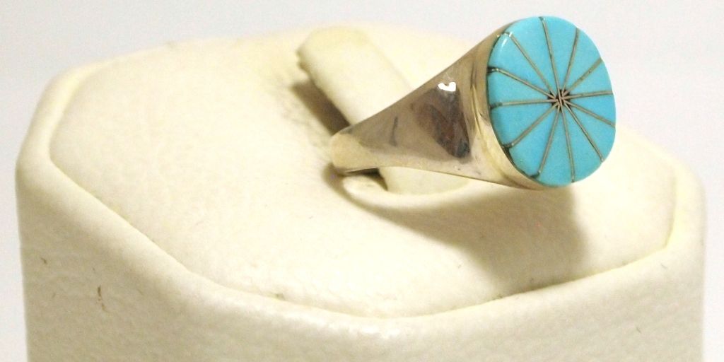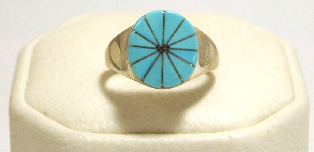 Zuni Turquoise Inlay Sterling Silver Women's Ring - Johnson Laweka