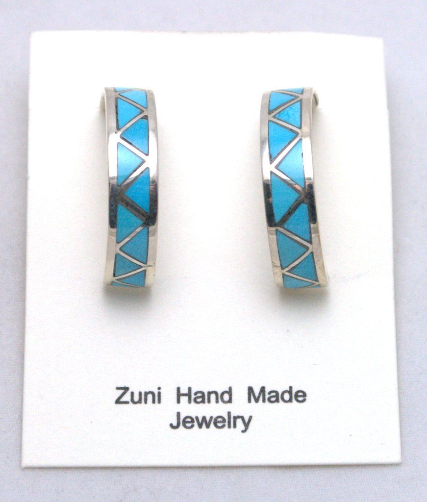 Zuni Turquoise Large Half-Ring Zig-Zag Design Earrings