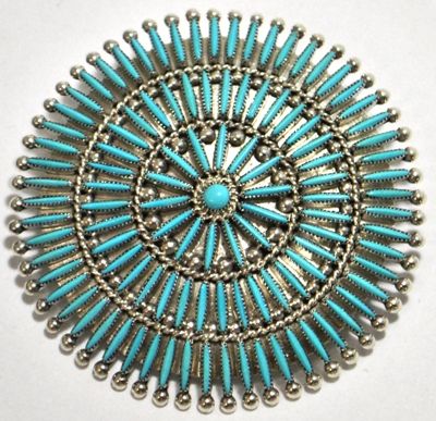 Zuni Turquoise Needlepoint Cluster Sterling Silver Pendant & Pin - Lance & Cordelia Waatsa